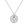 The necklace works with a magnet. You can wear the necklace like a four-leaf clover when you put the magnets together. When you pull these magnets apart, these clovers will unfold into four hearts.